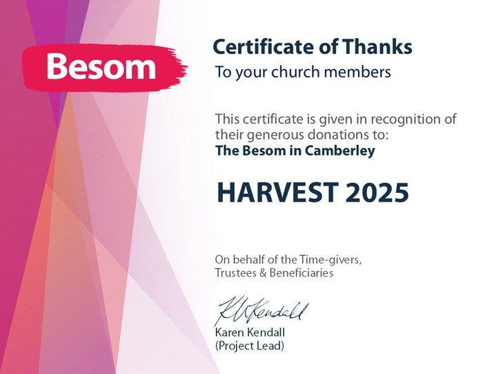 A message of thanks from the Besom for all Harvest appeal donations.