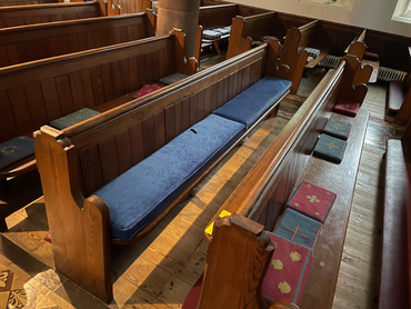 The cost of cushion for pews in the nave and the chancel (choir) will be around £5,000. This amount is too great to be covered entirely from existing church funds and so we hope that members of our community will feel able to make their own individual contributions. We are pleased to report that we already have some significant donations already promised, and will need to reach a minimum of £2,000 in donations before we place the order. Whilst we are confident of reaching this amount, if we do not do so then donations will be be held for other fabric improvements (as will any donations in excess of the total cost of the cushions).
