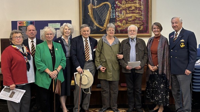 Pictured from l to r: Norah Hewson, Brigadier General Vince Kennedy, Wendy Kennedy, Carol Romses, Brigadier General Ray Romses, Lynne Cowley, David Cowley, Mary Ann de Chastelain & General John de Chastelain.