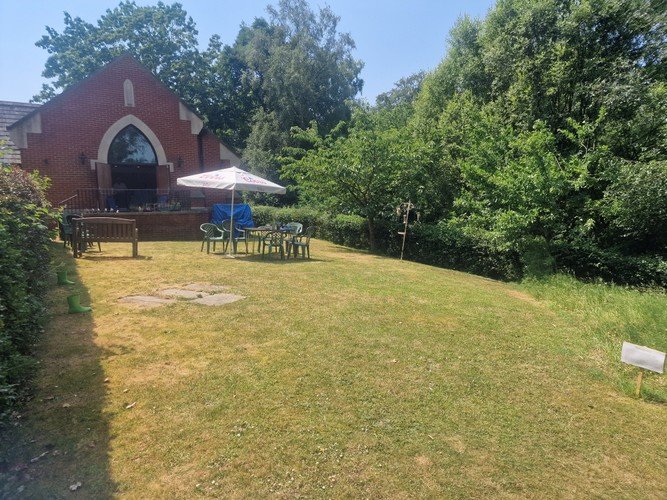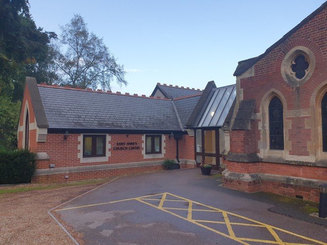 The Church Centre, connected to the main church building by a glazed lobby, provides meeting space, toilets, kitchen and office. The building was designed to reflect the style of the church construction and its facilities are fully accessible. It opened in 2006 and was made possible by the generous donation of Miss Marjorie Pike, a parishioner and member of the congregation for many decades. The view from the veranda is across Crown Estates parkland towards Bagshot Park itself.
